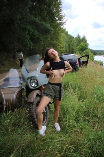 Dayana in Nude In Russia set Ural Motorcycle